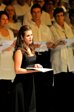 C’est la talentueuse soliste Léonie Renaud qui assurera la partition de soprano. Après l’obtention de son diplôme de piano au Conservatoire de Lausanne dans la classe de Christian Favre, elle se consacre entièrement à ses études de chant à la Haute Ecole des Arts de Berne. Elle a été membre de l’opéra studio suisse de Bienne et se produit régulièrement en Suisse, en Italie et en France comme soliste dans des oratorios (Elias-Mendelssohn/ Requiem-Mozart/ Oratorio de Noël-Bach/Lobgesang, Psaumes-Mendelssohn etc), et avec des orchestres symphoniques renommés. En janvier 2011, elle a reçu le prix d’encouragement des sciences et de la culture de la Ville de Delémont, sa ville natale.